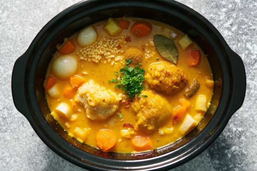 Tender chicken and red lentils create a hearty base, while ginger, garlic, and curry infuse every spoonful with gentle heat and complexity. The slow cooker does the work, allowing the ingredients to develop a deep, balanced richness.