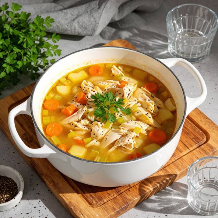 Celery and leek – Aromatic vegetables that bring subtle layers of flavor and a gentle crunch, balancing the richness of the chicken.